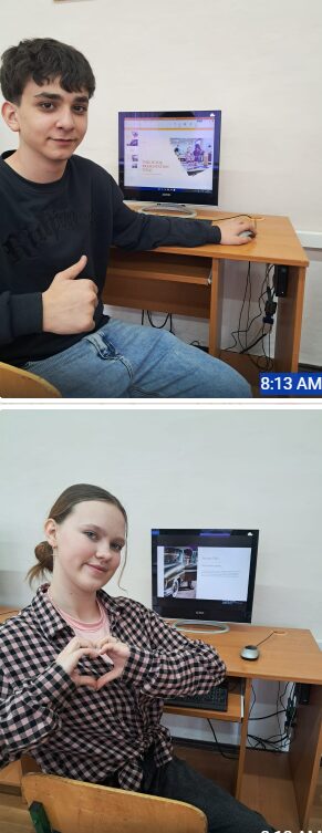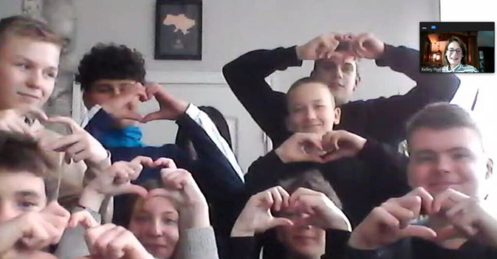 Students in Tetiana’s class during a Zoom session with Kelley Peel.