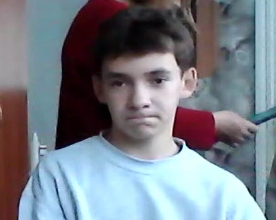 Students in Tetiana’s class during a Zoom session with Kelley Peel. “Most were smiling, curious, excited. But one boy—there was something in his eyes that stayed with me.”