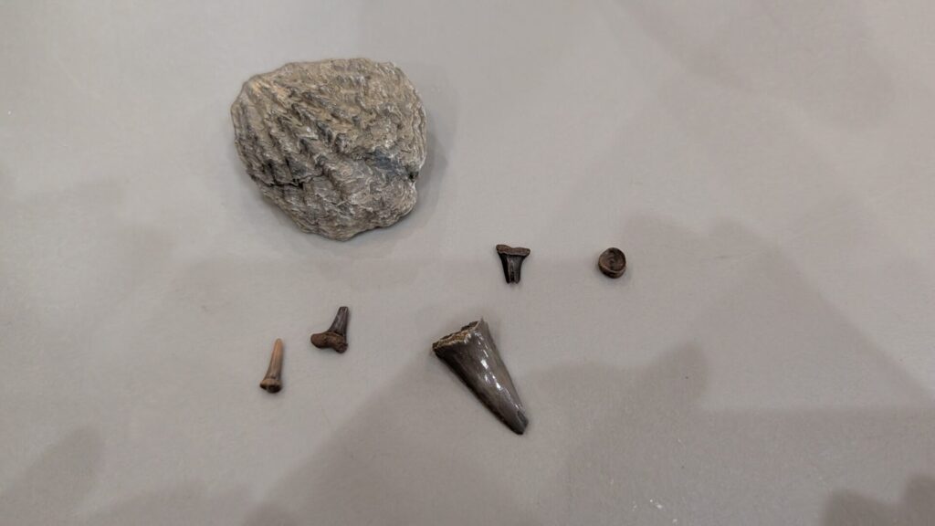 She also brought along a few of her finds, including small shark teeth and a fossilized shell, all collected from outside the Dallas, Texas area. Each piece carried a sense of place and history, a reminder that these discoveries are not just local, but part of a much larger story beneath the surface.