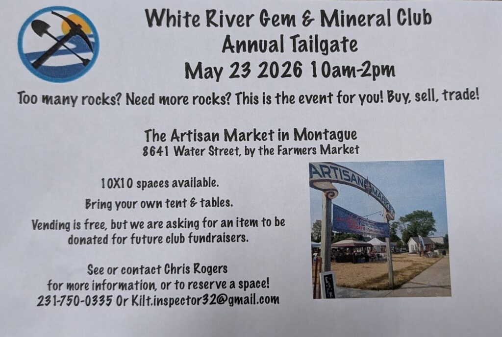 To learn more about the White River Rock, Gem, and Mineral Club and upcoming events, visit whiteriverrockclub.com .