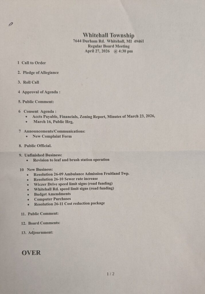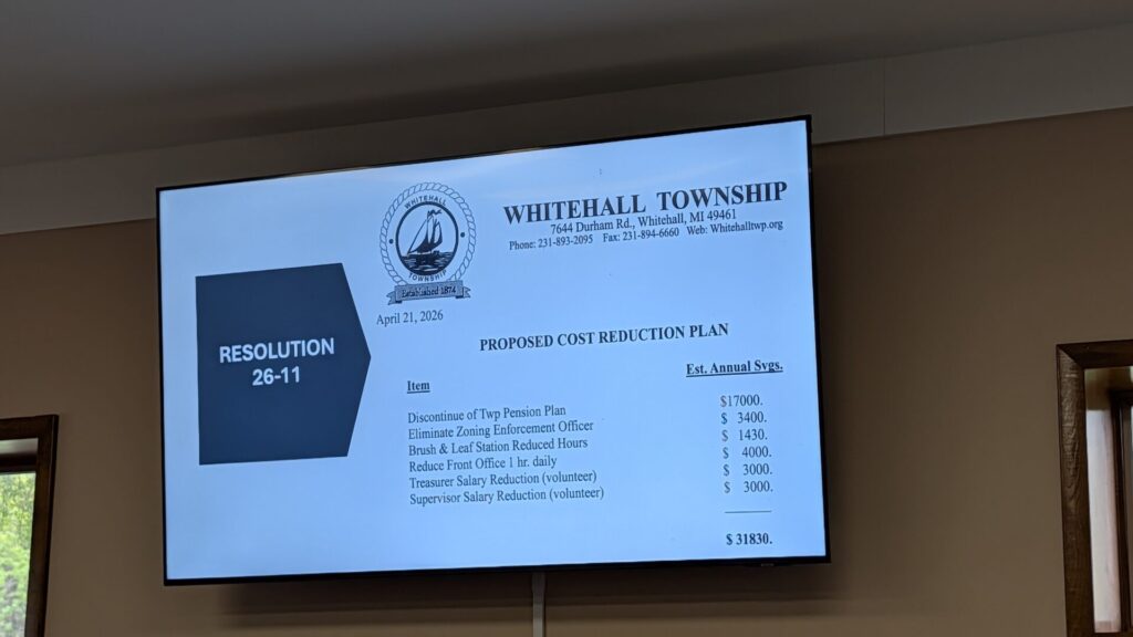 At its April 27 regular meeting, the Whitehall Township Board took a step toward reshaping its financial outlook, approving a cost reduction plan aimed at stabilizing long term sustainability while continuing to respond to resident concerns.