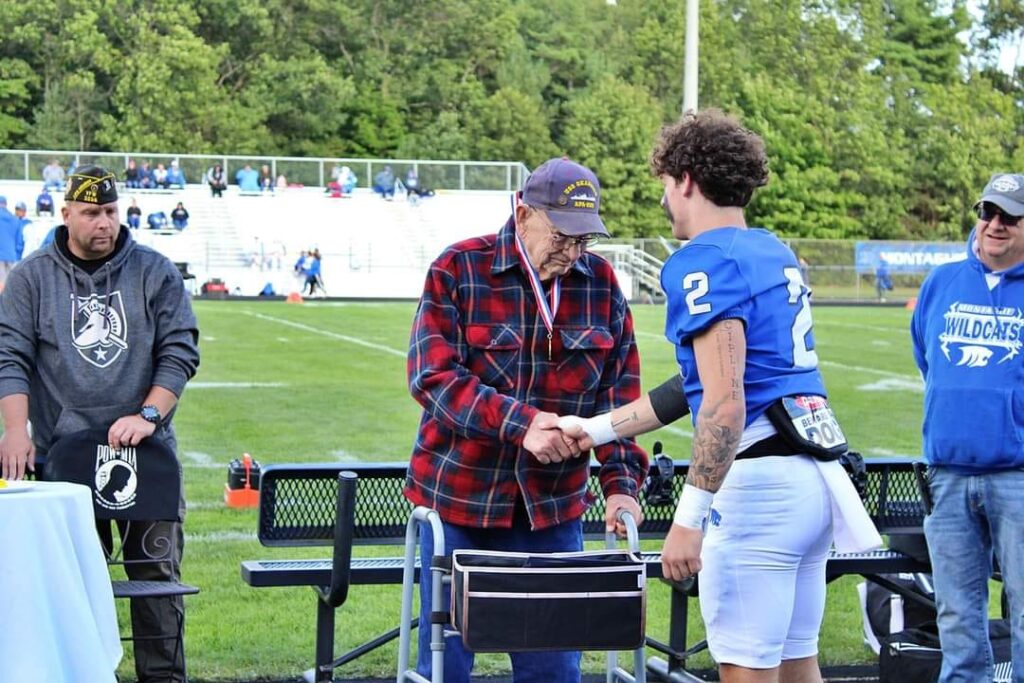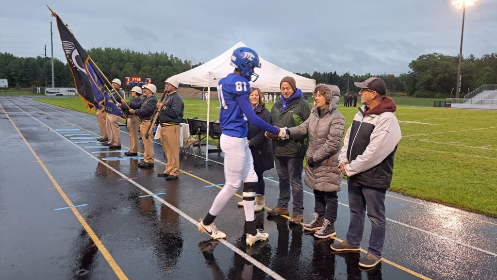 This year’s Hometown Heroes are Wanda Lee Suits and Arland Cederquist, celebrated for their decades of service to Montague and its schools. Wood treasures many memories from past ceremonies, including honoring Jack Woller, a Montague graduate who died in the Vietnam conflict. After Woller’s mother shared his story, Coach Mulder located an old football for the team to sign; the captain presented it to Woller’s family—“a healing moment,” Wood said. Last year, 92-year-old Wayne Schneider thrilled the crowd with the coin toss.