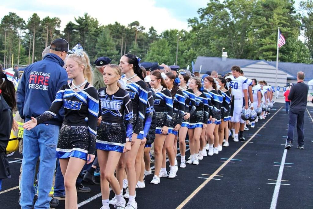 Inspired by schools that honor veterans at football games, Wood broadened the vision to include first responders and Hometown Heroes. After consulting with the director of Mona Shores’ Salute, she pitched the idea to Montague High School Assistant Principal/Athletic Director Jay Mulder and Montague Superintendent Jeff Johnson—“both responded with a resounding YES!” She also credits SSG Joel Parham of the local National Guard and Gloria Hess of the VFW for invaluable support.